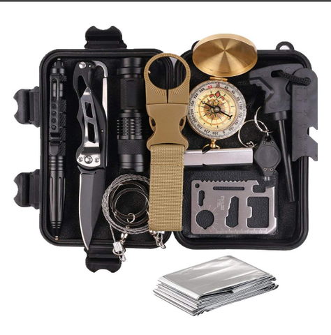 11 सामरिक पेन के साथ एक बाहरी आपातकालीन उत्तरजीविता किट | ब्रेसलेट | तापमान कंपास | फायर स्टार्ट, उत्तरजीविता गियर किट